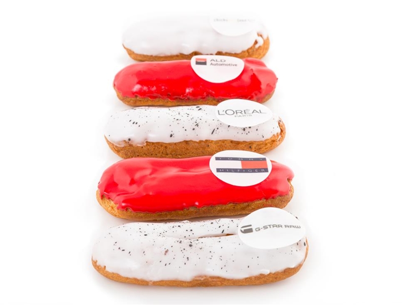 Luchtig soezenbeslag gevuld met een namalaka van frambozen. Omdat wij onze patissiers niet willen beperken in hun creativiteit en omdat we werken met seizoensproducten, kan het uiterlijk van deze eclair per seizoen wijzigen.